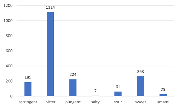 Overview on the phytochemical entries per each orosensations available in PlantMolecularTasteDB (PMTDB)